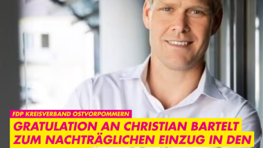 Nachdem Hagen Reinhold sein Bundestagsmandat aus persönlichen Gründen niedergelegt hat, wird Christian Bartelt als Nachrücker in den Bundestag einziehen.